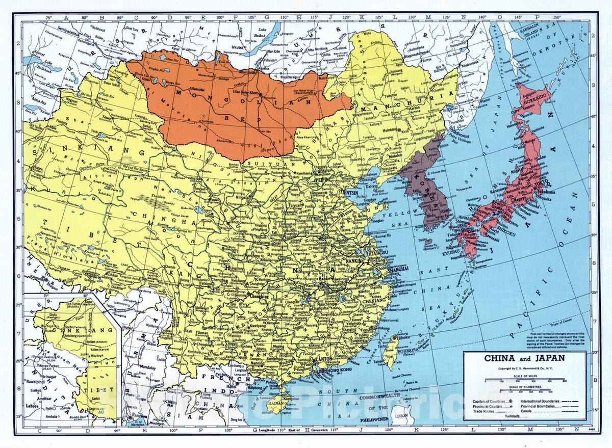 Historic Map : 1948 China and Japan. Vintage Wall Art Historic
